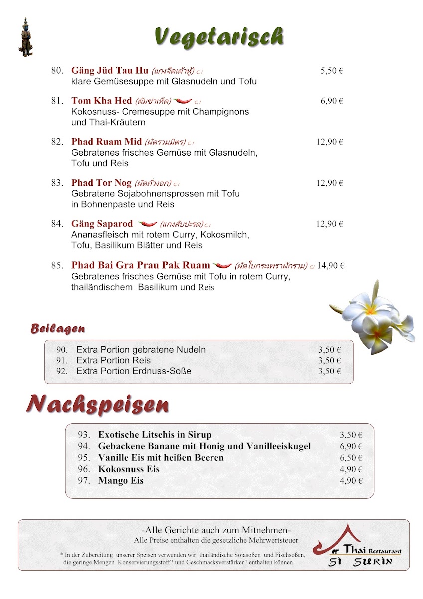Welcome to Si Surin- Thai Restaurant, a hidden gem nestled in Vellmar, Germany. Located at Triftstraße 103, this delightful establishment offers an authentic taste of Thailand, renowned for its friendly service and inviting atmosphere. The menu boasts a range of dishes that capture the vibrant flavors of Thai cuisine, leaving diners craving more.